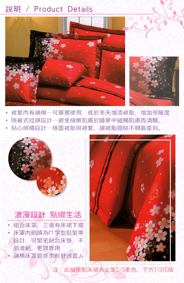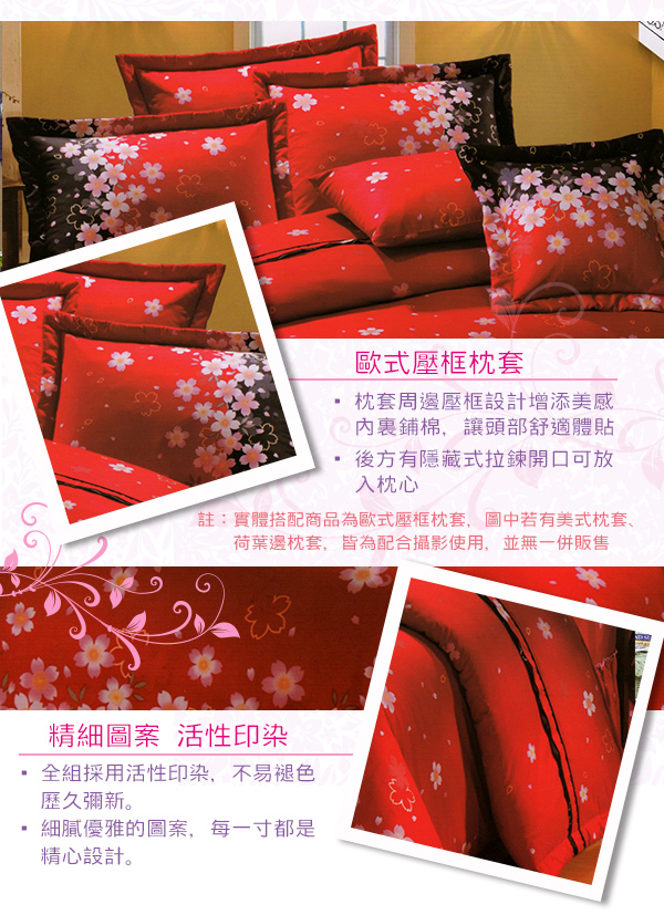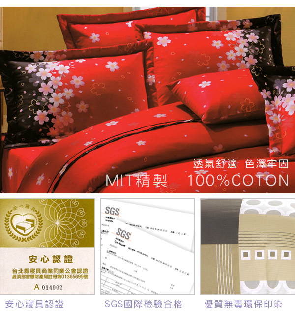【巴麗維亞】喜氣連連(頂級加大活性精梳棉六件式床罩組台灣精製)詳細說明: